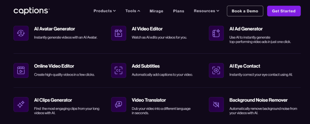 第四个工具能帮你省好多时间。它叫Captions,你可以用它自动给视频生成字幕,还能给自己弄个克隆版来帮你录制视频。