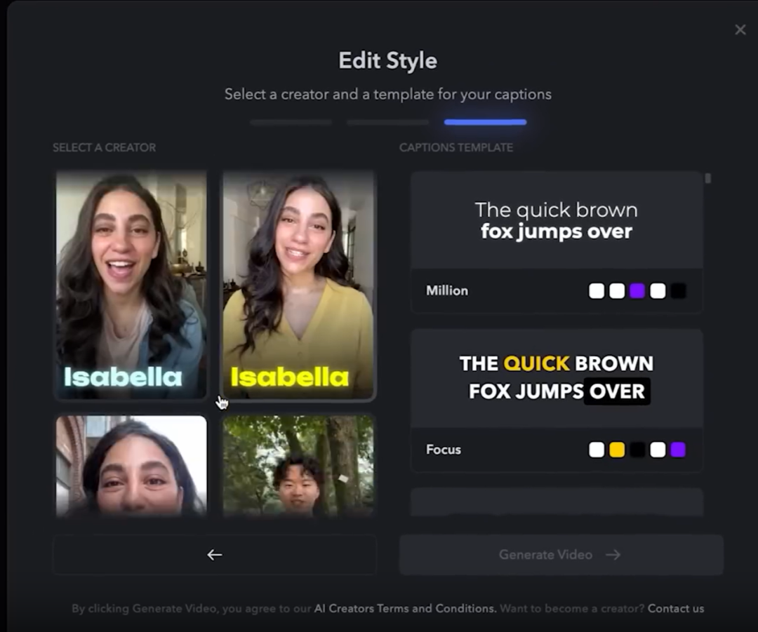 你可以用Caption AI的创作者工具。点击AI创作者工具,有三个选项,选自定义。我让ChatGPT 写了一个200字的心理学脚本做例子。把脚本粘贴到指令框里,点击编辑风格,你可以选想用的创作者。我选Jake,因为他看起来懂心理学。字幕我选Monster,点击生成视频,等几分钟,完全由AI生成的内容就有了。