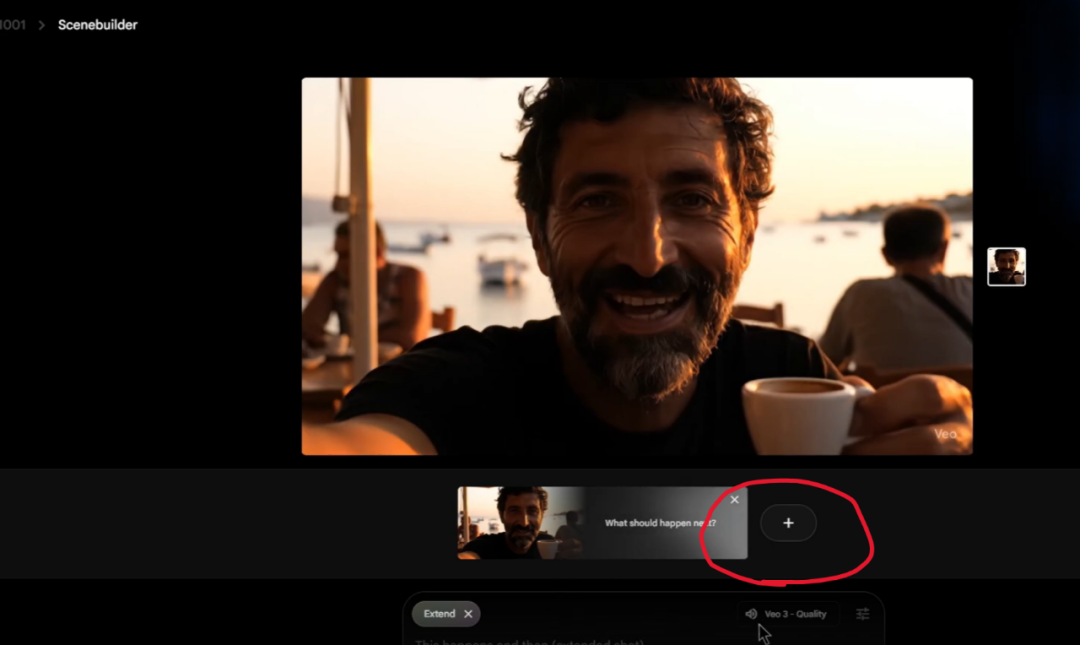 我们试试用Veo3里的场景构建器做一个完整的场景。比如,打开一个视频,点击“添加到场景”,就会自动打开场景构建器。
