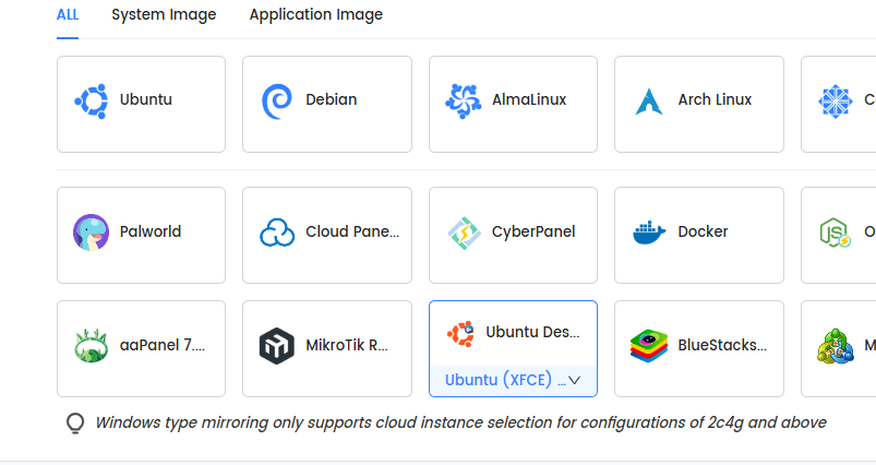 可以选择的操作系统挺多的,包括常见的 Ubuntu,Debian,CentOS,Windows,Docker等,小众的 macOS 系统都有,还可以一键安装宝塔(bt)面板,方便操作和管理VPS。