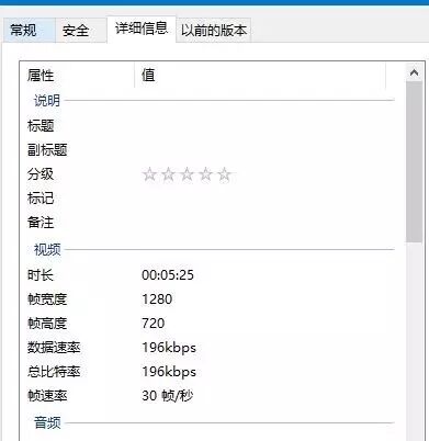 - 在视频文件详细信息(右键单击视频文件和点击详细信息):